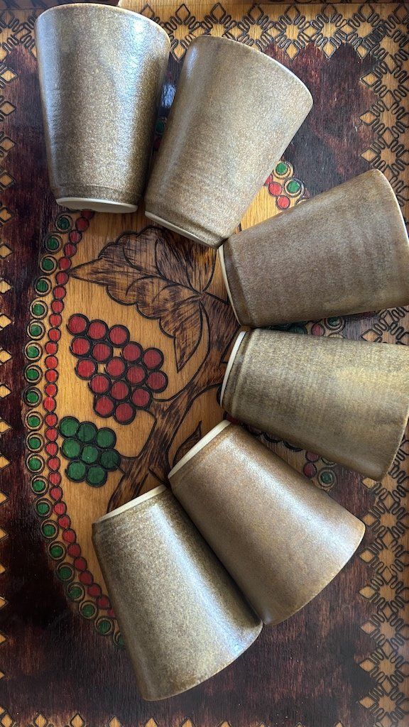 Verre, gobelet en grès de Digoin vintage, gravé dans la masse "GRES POTS DIGOIN MADE IN FRANCE"
